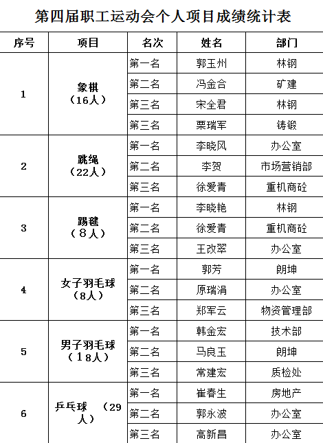 下午3點,伴隨著象棋項目冠 軍的產生,此次運動會圓 滿結束。共 產生27個個人獎和15個團體獎。